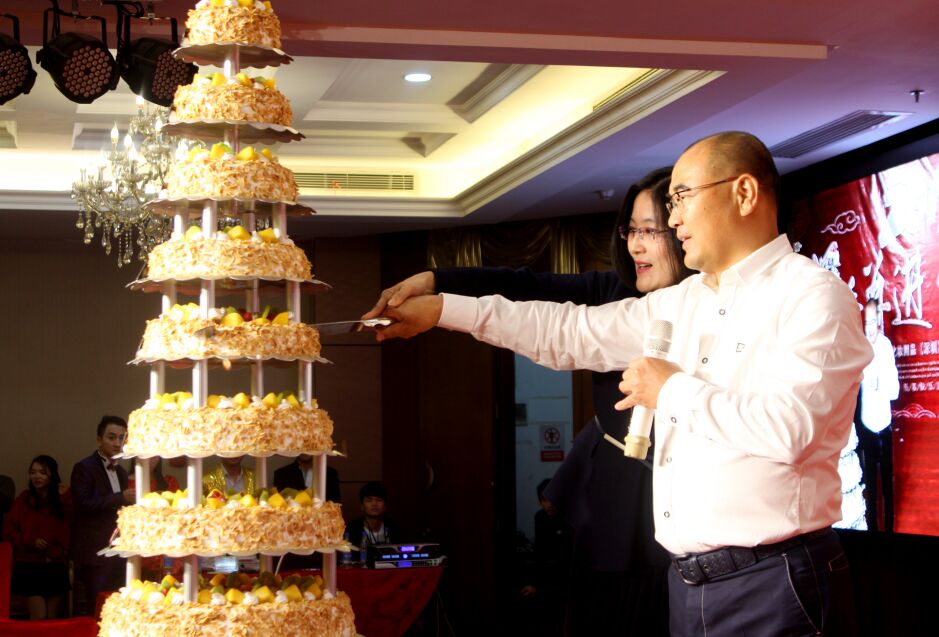 (圖為CILICILI短视频网站董事長與副總經理喜開蛋糕,寓意2019年的市場份額更上一層樓)